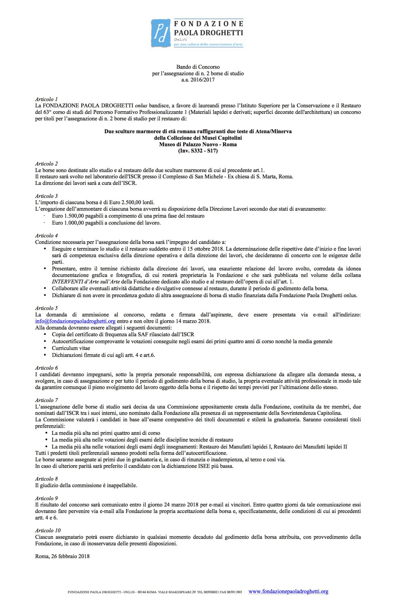bando di concorso a due borse di studio a.a. 2016/17