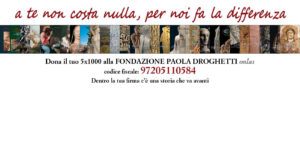 La Fondazione Paola Droghetti è una ONLUS ed è iscritta alla lista dei soggetti abilitati a ricevere il “5×1000”. E’ quindi possibile e facile sostenerci anche in questa forma per chi deve presentare il mod. Unico, o il mod. 730, o il semplice Cud.