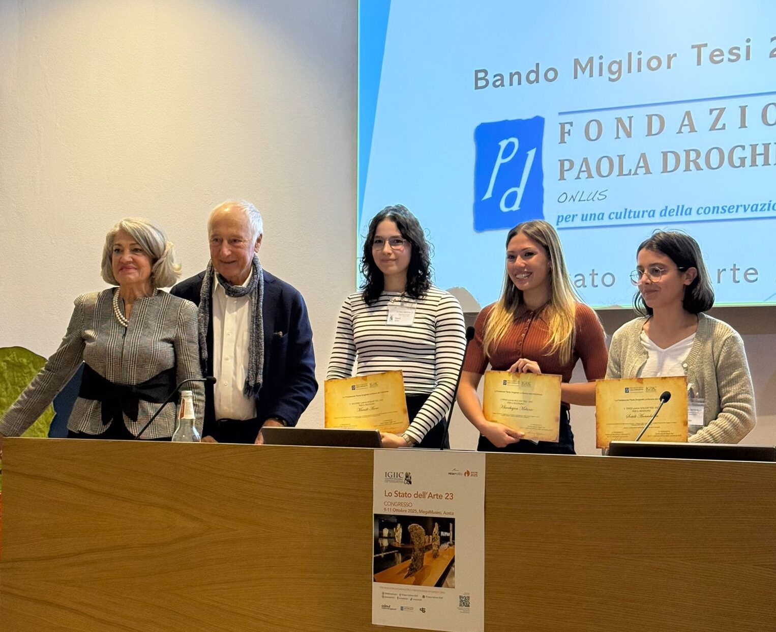 La Fondazione Paola Droghetti ha istituito in collaborazione con: Gruppo Italiano dell’International Institute for Conservation (IG-IIC), un concorso annuale permanente presso l’IGIIC per l’assegnazione di N°3 premi in denaro, per le migliore tesi di laurea agli studenti laureati che partecipano al Congresso Annuale Nazionale “Lo stato dell’Arte”.